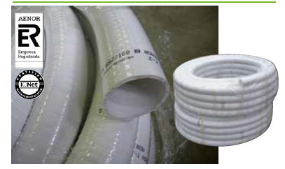 • Slang van geplastificeerd PVC, versterkt met een spiraal van